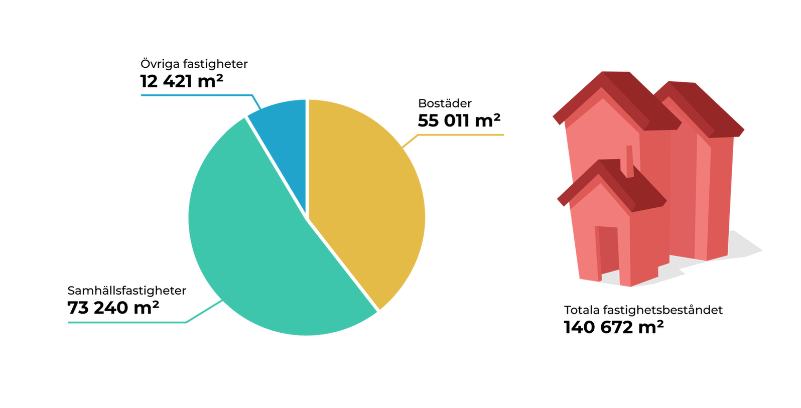 Bolagets fastighetsbestånd delas in i tre kategorier. Bostäder inkl. LSS-bostäder, trygghetsbostäder och särkiltboende. Samhällsfastigheter som bland annat omfattar förskolor, skolor, kontor, utbildningslokaler och räddningsstationer samt övriga fastigheter som bland annat omfattar industrifastigheter och upplevelseindustrier.
